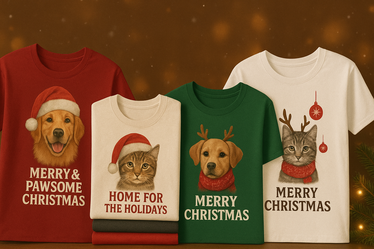Wrap the magic of Christmas around your heart with this beautifully designed pet-themed holiday tee.